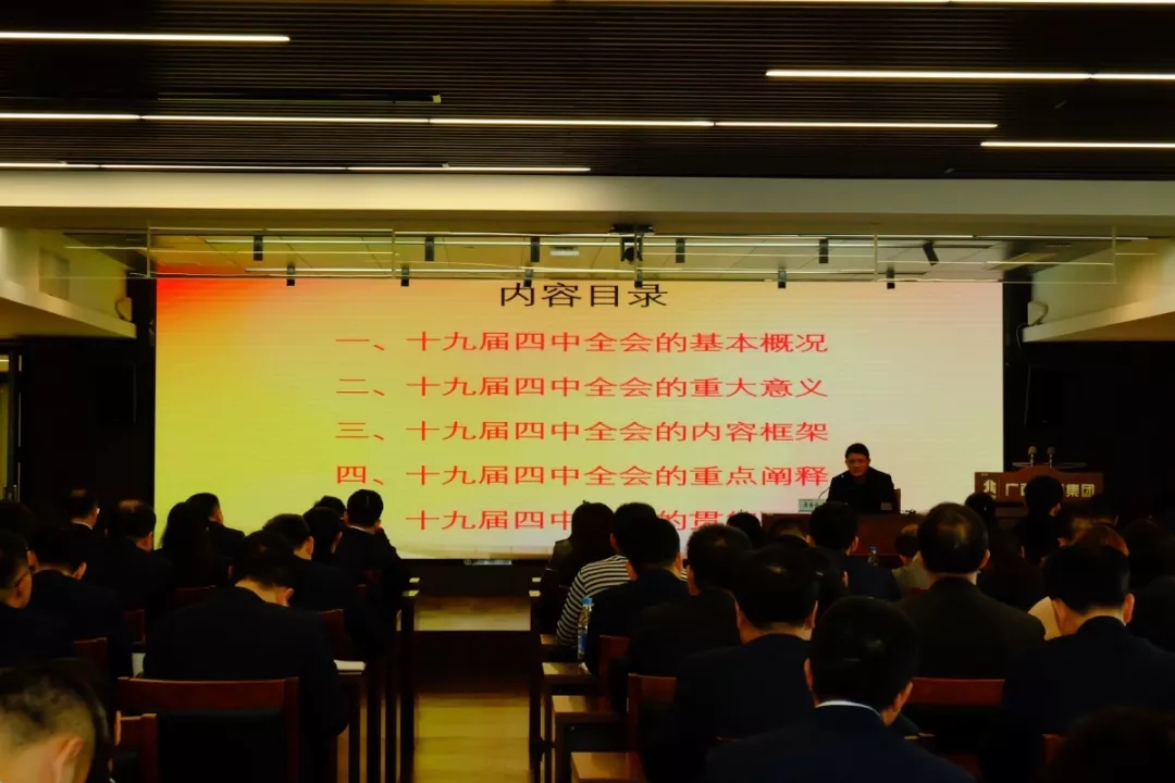 活動首先邀請中共廣西區委黨校、廣西行政學院公共管理教研部譚英俊教授講授《黨的十九屆四中全會精神解讀》主題黨課。譚教授用風趣幽默的講課風格,讓大家在輕松的氛圍內更深一步地了解了十九屆四中全會的基本情況、重大意義、內容框架、重點闡釋,以及貫徹落實情況。