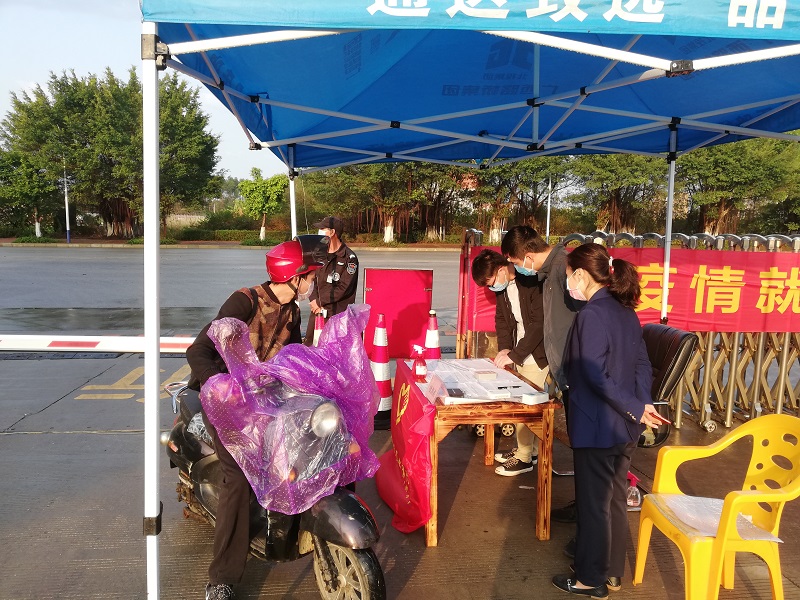 在北投(北海)科技園,共有入園企業(yè)36家,自2月10日起,一些企業(yè)已陸續(xù)復(fù)工或安排人員值班。為緩解上班高峰期園區(qū)入口處體溫檢測(cè)壓力,減少人員等待時(shí)間,志愿者們協(xié)助保安人員做好入園人員的體溫檢測(cè)和信息登記工作,并適時(shí)開展防控知識(shí)的宣傳。