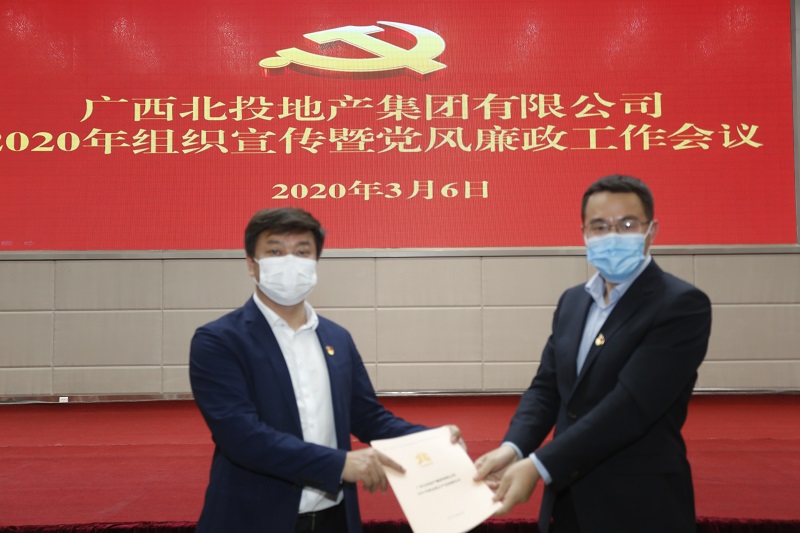 3月6日,北投地產集團召開2020年度組織宣傳暨黨風廉政建設工作會議,深入貫徹落實習近平新時代中國特色社會主義思想和黨的十九屆四中全會精神,總結2019年組織宣傳及黨風廉政建設工作,部署2020年工作任務,并遞交2020年全面從嚴治黨責任書。公司領導、各部門負責人,各黨支部書記及各直屬單位黨建、宣傳、紀檢監察部門負責人參加會議。