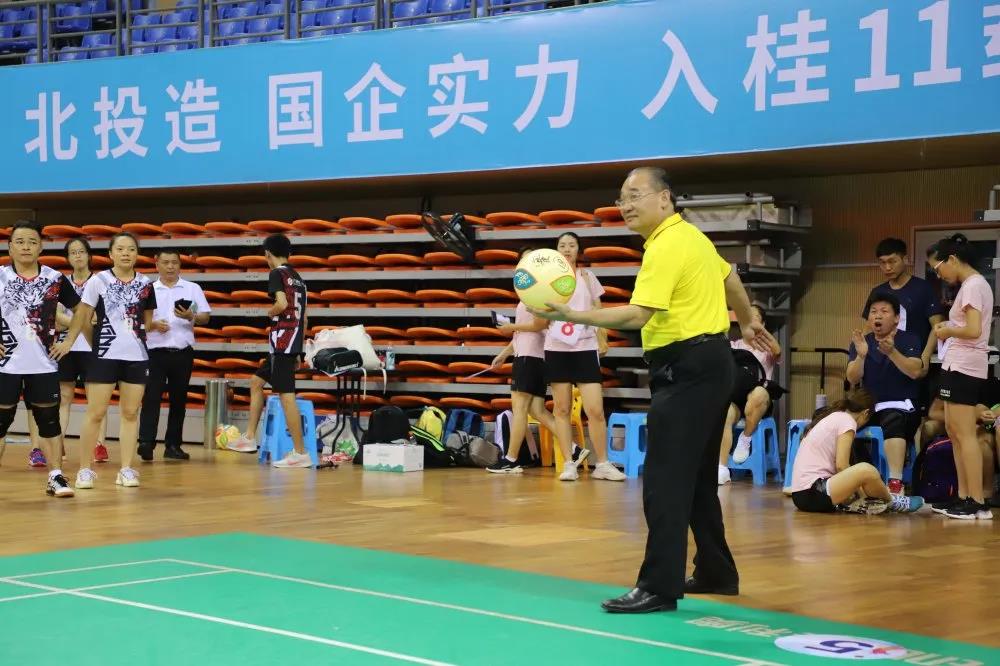 下午17:00,廣西建設工會主任王偉華宣布比賽正式開始。隨后,北投集團黨委副書記、董事、工會主席曾慶生為本次比賽發第一球。比賽過程中參賽隊員緊緊盯住目標、互相之間配合默契,發球員聚精會神、沉著冷靜,扣球隊員快狠準,場內歡呼聲、加油聲此起彼伏,氣氛緊張又激烈。