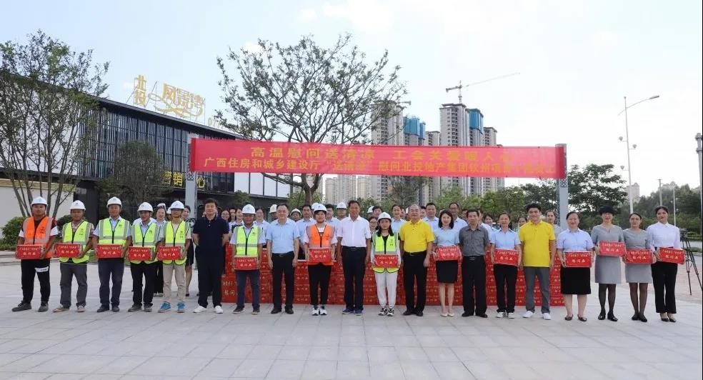 7月24日 ,在北投集團(tuán)黨委副書(shū)記、董事、工會(huì)主席曾慶生的帶領(lǐng)下,廣西建設(shè)工會(huì)主任王偉華一行到北投鳳景灣項(xiàng)目調(diào)研,并開(kāi)展“送清涼”慰問(wèn)活動(dòng)。