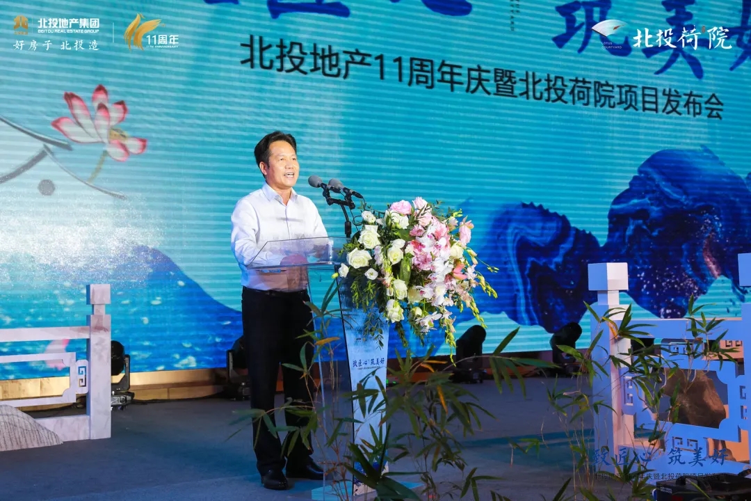 北投集團黨委書記、董事長朱堅和對北投地產11周年慶暨北投荷院產品發布會的順利舉辦表示祝賀,代表北投集團向頑強拼搏、奮力追夢的北投地產全體員工致以親切慰問。