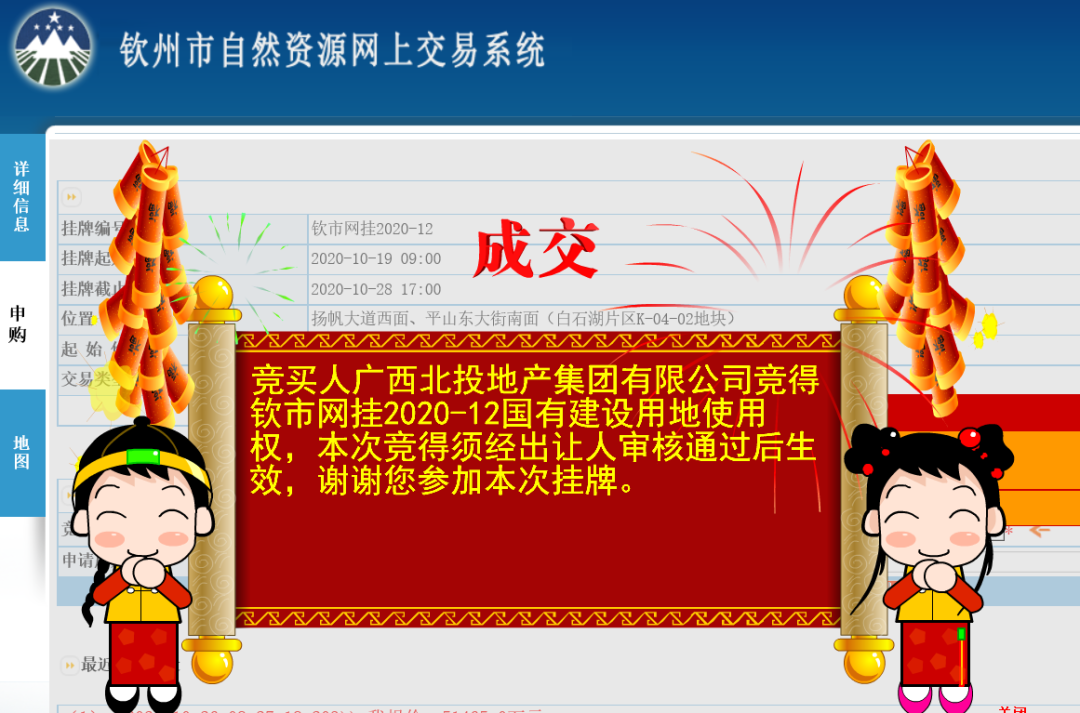 10月28日下午,北投地產(chǎn)集團(tuán)以底價(jià)51,465萬(wàn)元成功摘得欽州市白石湖片區(qū)198畝優(yōu)質(zhì)土地(宗地號(hào):欽市網(wǎng)掛2020-12),成交每畝單價(jià)260萬(wàn)/畝(折合樓面地價(jià)1114元/㎡)。