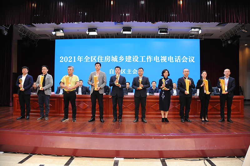 2月24日,2021年全區(qū)住房城鄉(xiāng)建設(shè)工作電視電話會議在南寧召開,自治區(qū)黨委常委,自治區(qū)人民政府副主席黃世勇出席會議并講話。大會現(xiàn)場對第九屆(2019-2020年度)“廣廈獎”獲獎單位進行表彰。