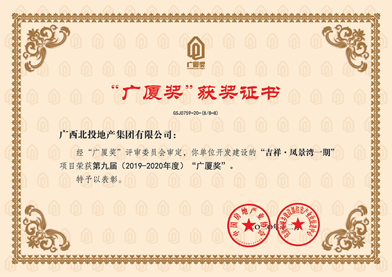 北投地產(chǎn)集團秉承“好房子,北投造”的理念,發(fā)揮國企地產(chǎn)的實力,匠心打造精品工程。其中,傾心打造的第二座“鳳景灣”系列高端樓盤——吉祥·鳳景灣項目,以優(yōu)秀的規(guī)劃設(shè)計、過硬的建筑品質(zhì)、優(yōu)美的園林景觀,在全國眾多項目中脫穎而出,成功摘得第九屆(2019-2020年度)“廣廈獎”。